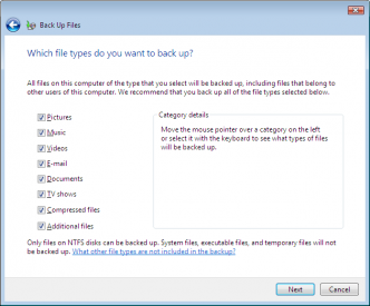 Why can I not select what I want to backup in Vista?!